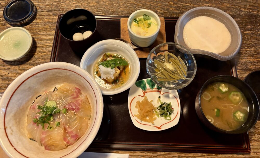 滋養料理のお店で、こちらは天山の温泉を利用しない方も入れるので、お一人じゃない方も多かったですが、1人でも4人テーブルの広々スペースを案内してもらえて人との距離も気にせずゆっくり食べられました。